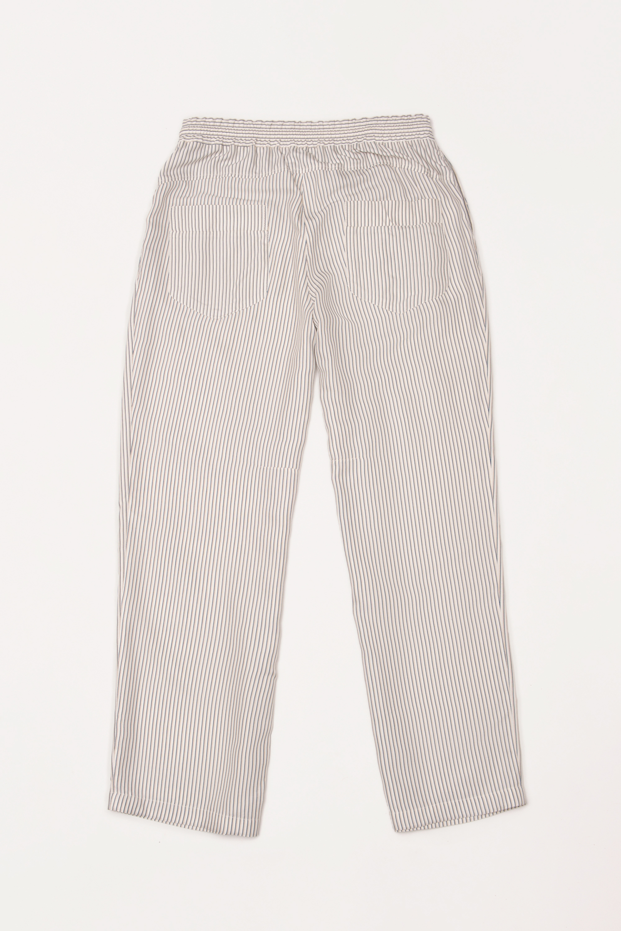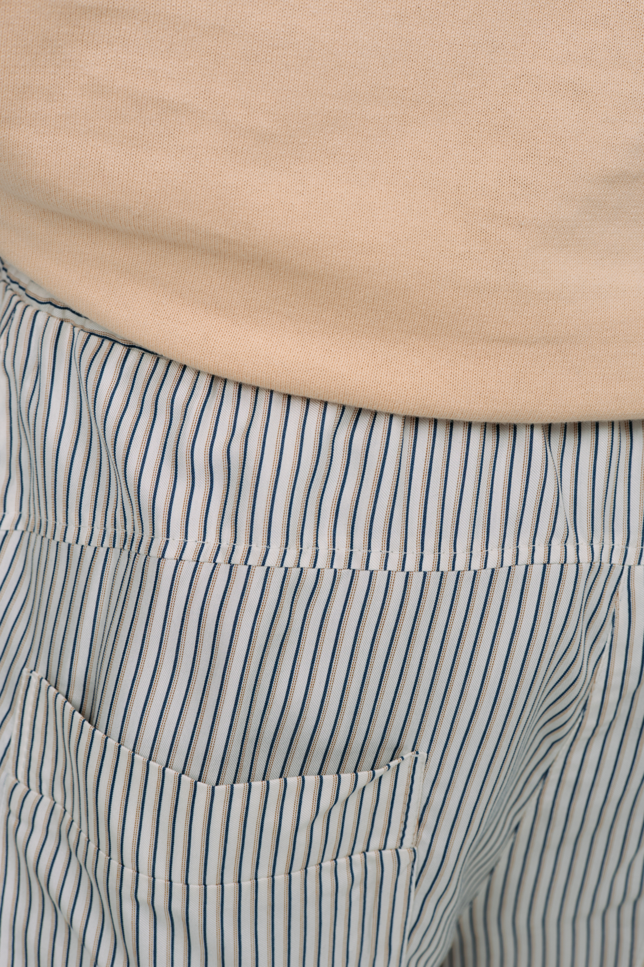 Тонкая вертикальная полоска создаёт мягкий ритм, визуально вытягивает силуэт и добавляет глубины спокойному оттенку. Лёгкая вискоза струится при движении, делая посадку максимально комфортной и живой.