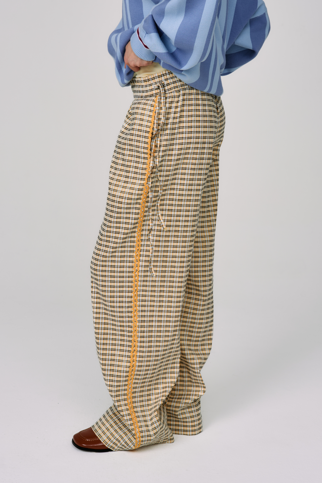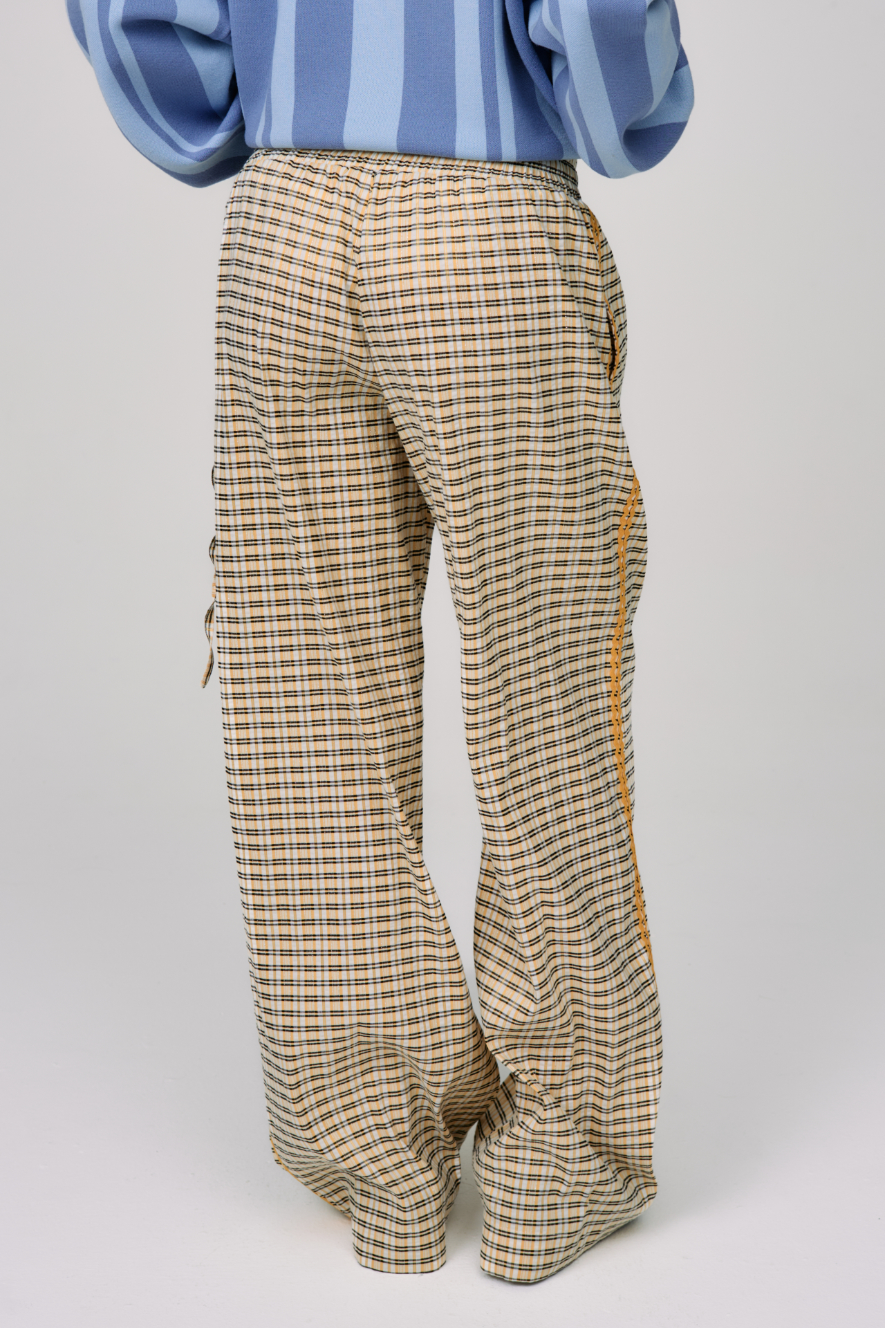 Контрастная боковая линия задаёт динамику и формирует чёткий силуэт, добавляя образу ощущение движения и ритма. Лаконичный крой делает модель универсальной — брюки легко сочетаются как с трикотажем, так и с более классическими элементами гардероба.