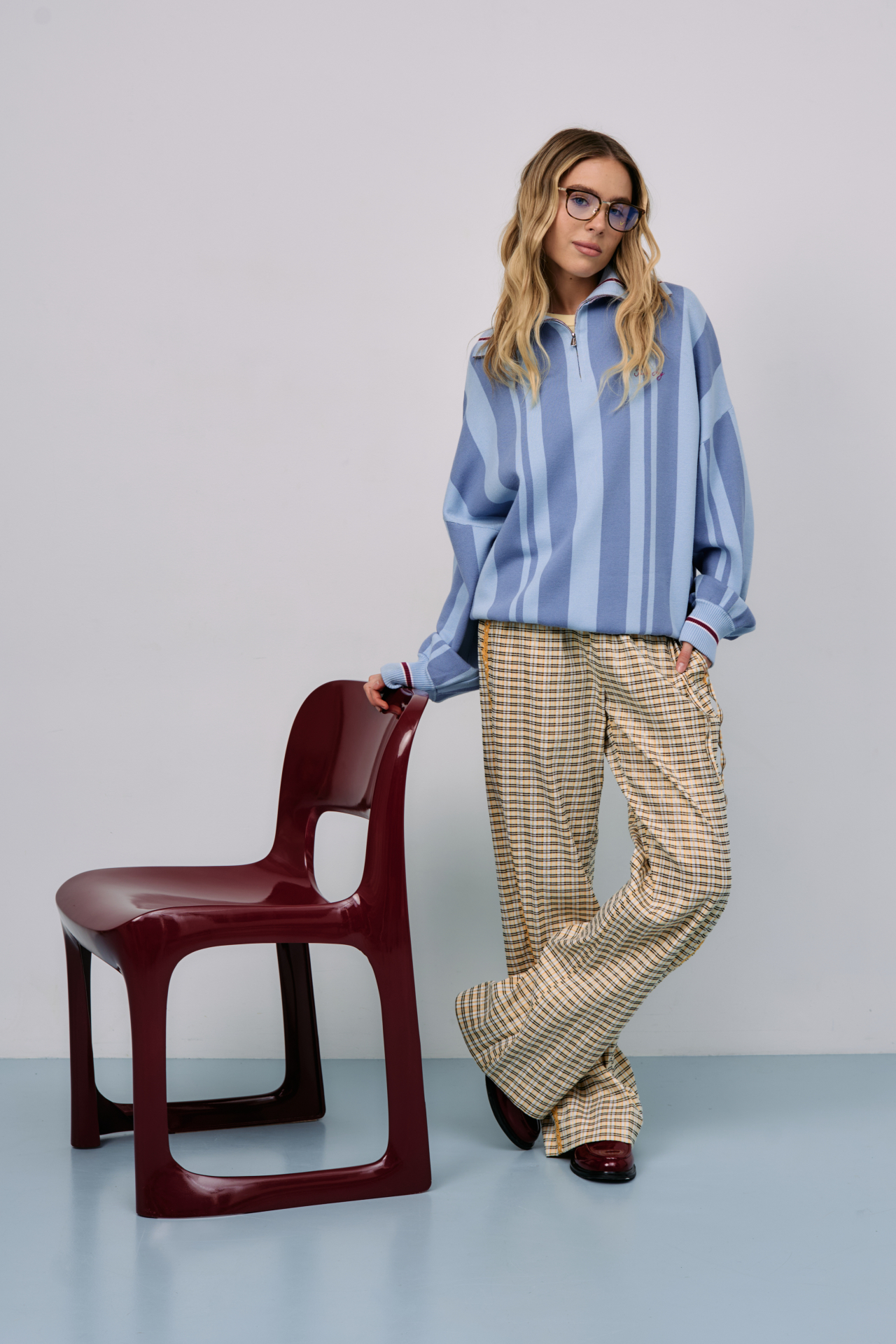 Брюки Joy Track вдохновлены эстетикой винтажной спортивной формы, переосмысленной в духе зрелого преппи-стиля.