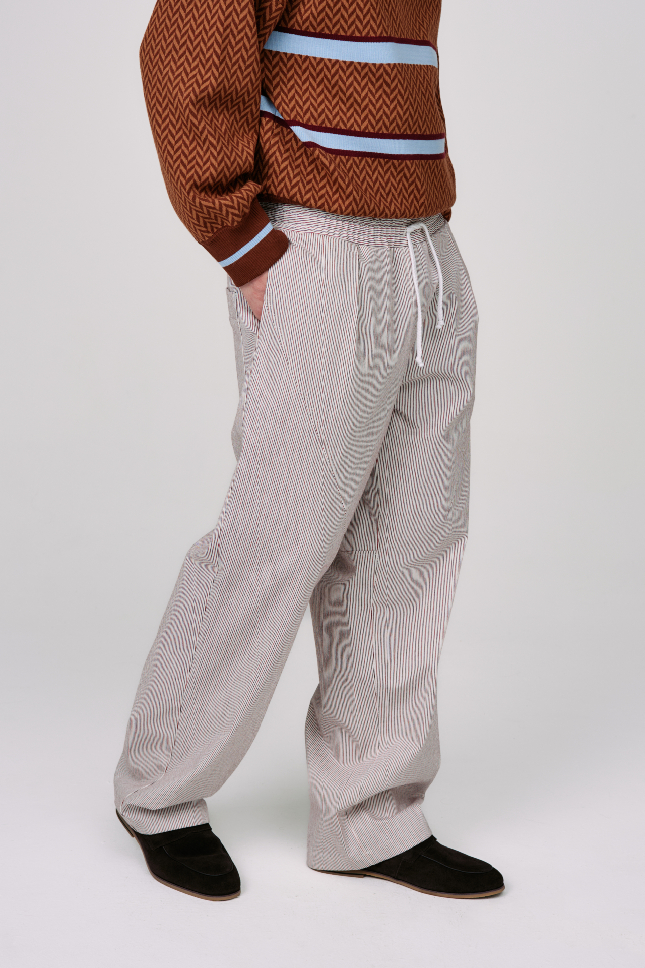 Эластичный пояс с кулиской делает посадку гибкой и расслабленной — брюки легко адаптируются под движение и ритм жизни.