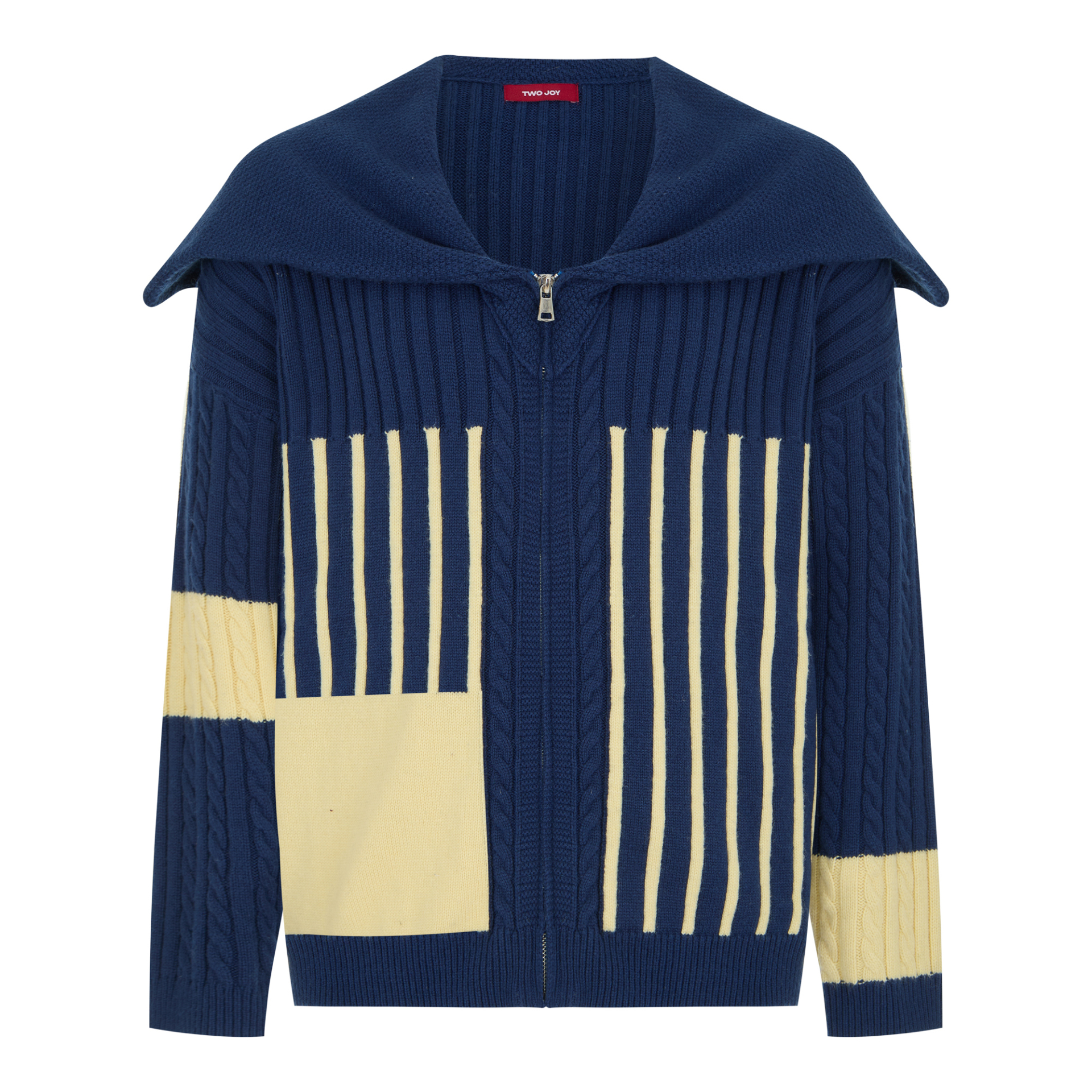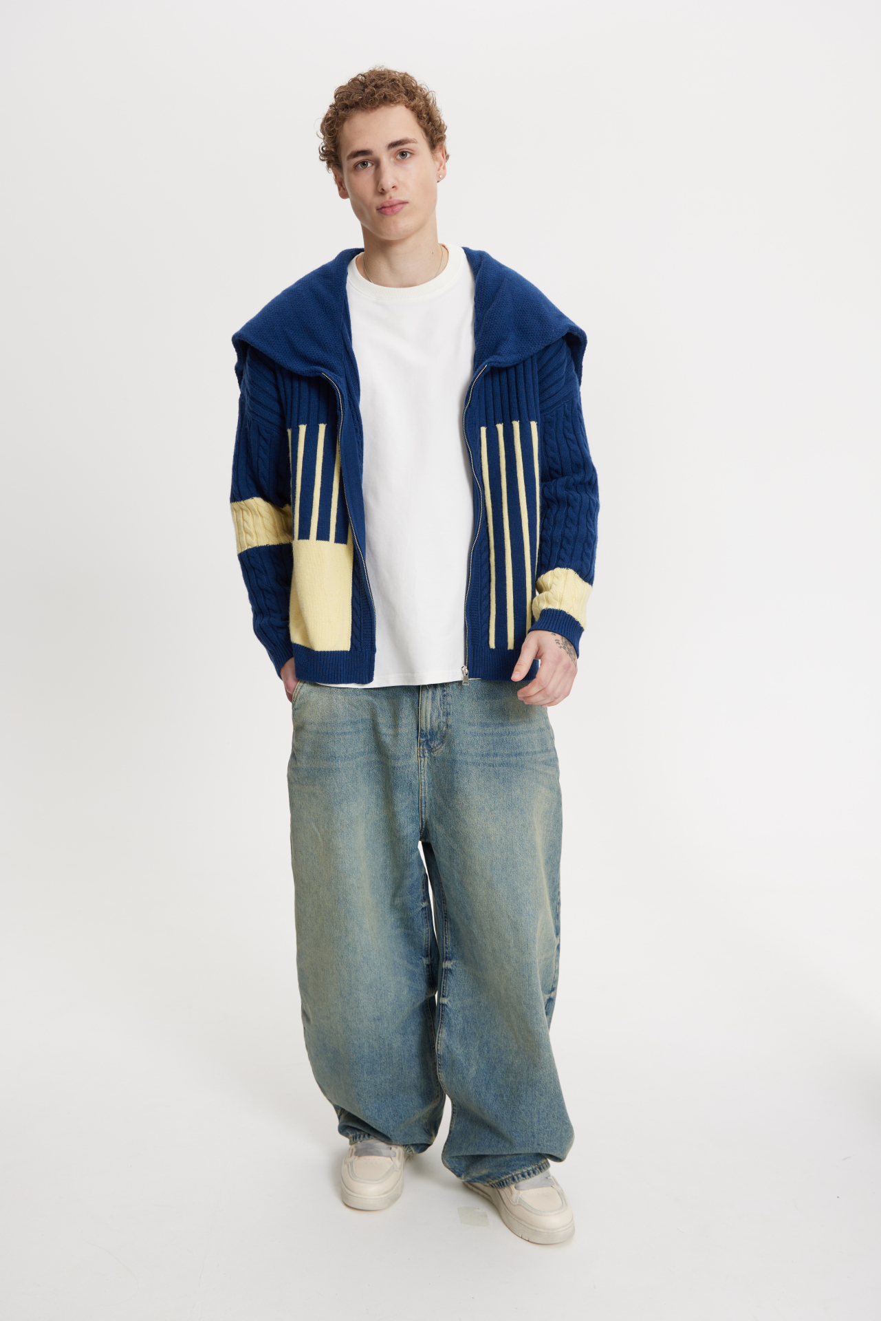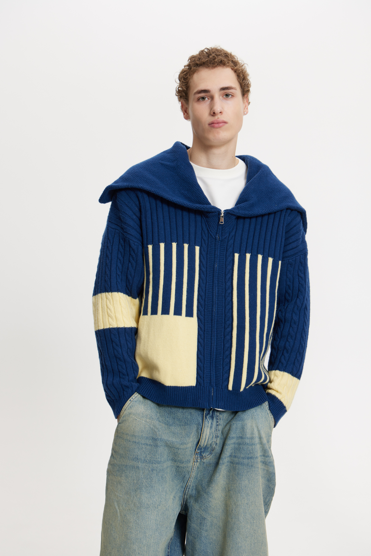 Кардиган застёгивается на молнию и имеет выразительный отложной воротник, который добавляет образу лёгкий акцент и кинематографичный шарм.