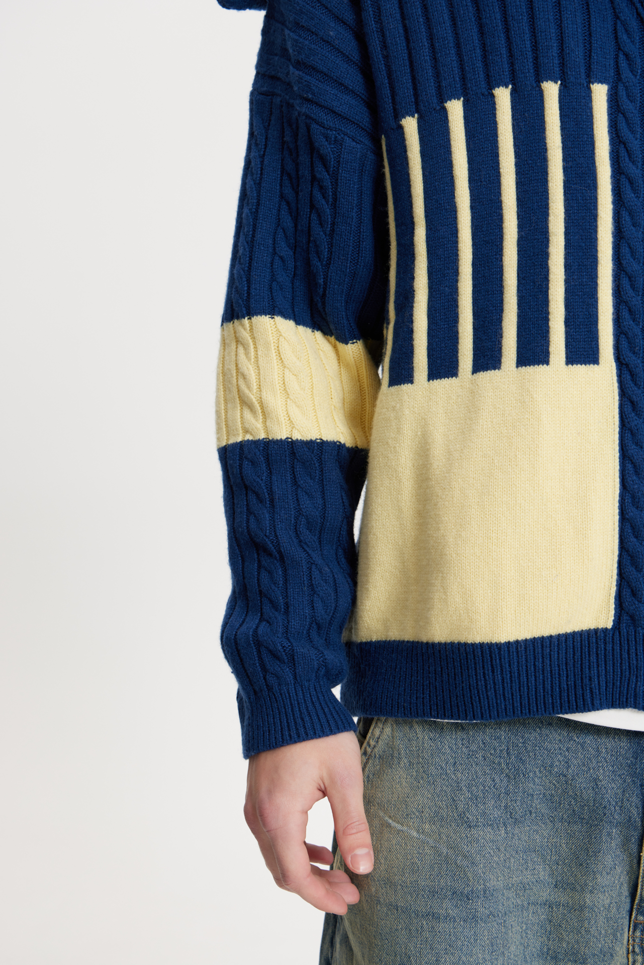 ✔️ Дизайн: геометрические вставки цвета экрю, рельефная вязка, акцентный воротник