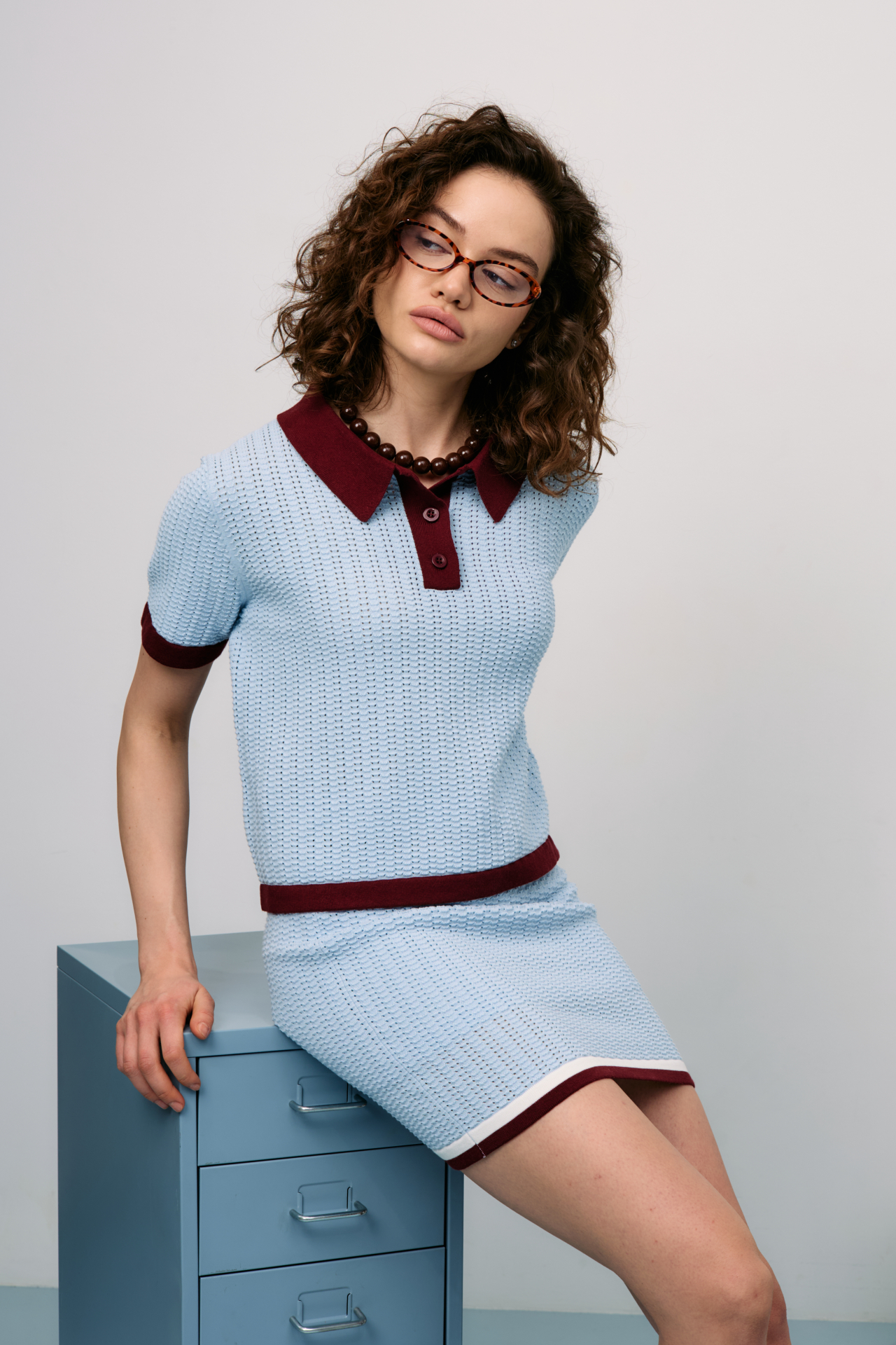 Поло и юбка Sky Club создают цельный силуэт — спокойный, выверенный и уверенный.