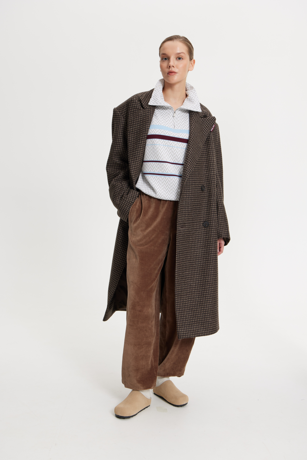 Пальто из такой ткани со временем сохраняет свой внешний вид и посадку, оставаясь стойким к износу и актуальным на многие сезоны вперёд.