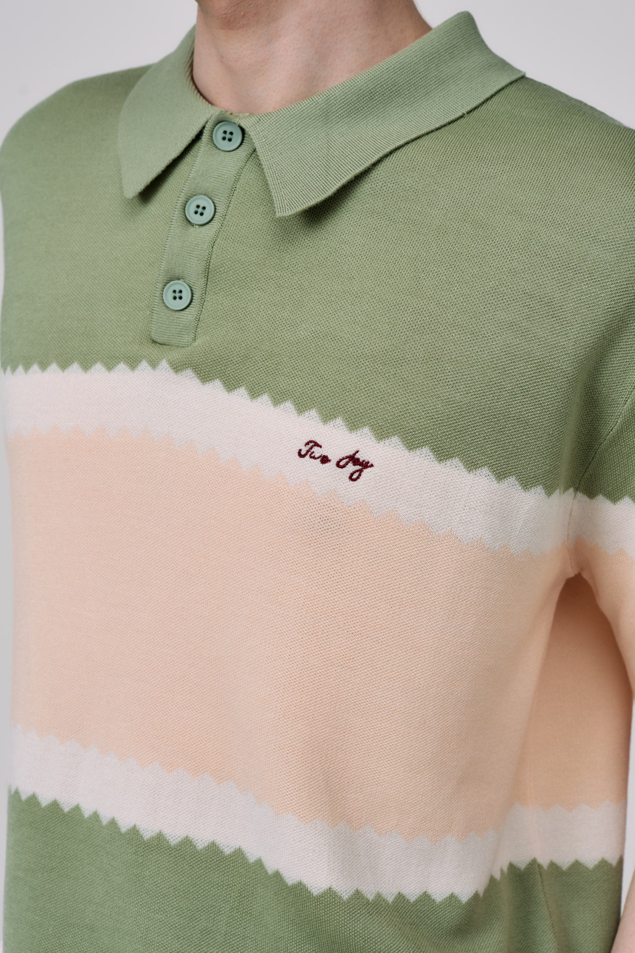 Контрастная вышивка Two Joy на груди завершает композицию и подчёркивает характер изделия.